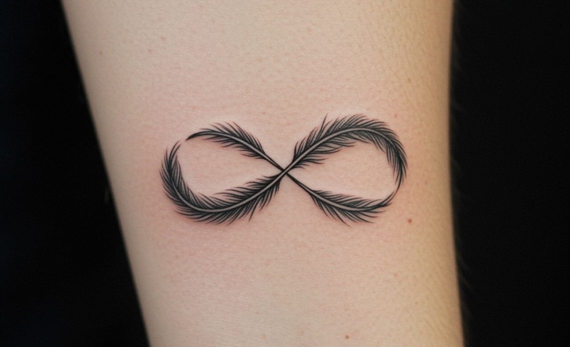 Piórko, choć delikatne i kruche, posiada niezwykle głębokie znaczenie symboliczne, które często kojarzymy z wolnością, duchowością i ulotnością bytu. Jego obecność w tatuażu nieskończoności wzbogaca całą kompozycję o dodatkowe warstwy interpretacyjne, nadając jej subtelny, a zarazem potężny wydźwięk.